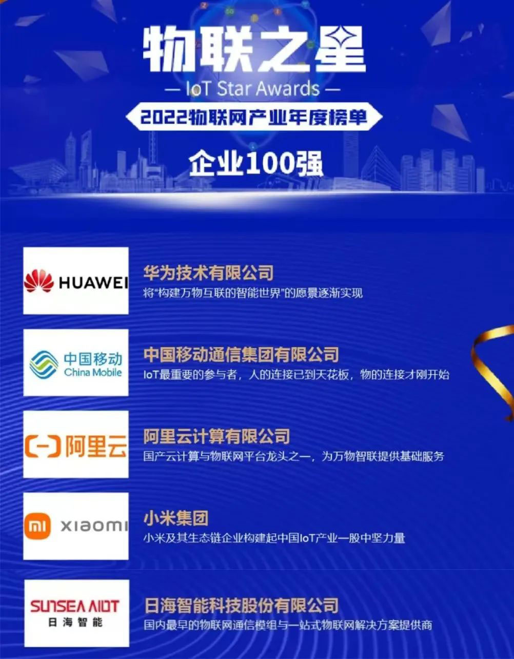 “物联之星”物联网行业年度榜单作为物联网行业超高权威性、专业性的评选活动一直备受瞩目,被誉为中国物联网行业的奥斯卡奖。近日,一年一度的2022“物联之星”物联网行业年度榜单的结果重磅来袭,710公海寰宇公司智能不负众望,荣登2022年度“物联之星”中国物联网企业100强!
